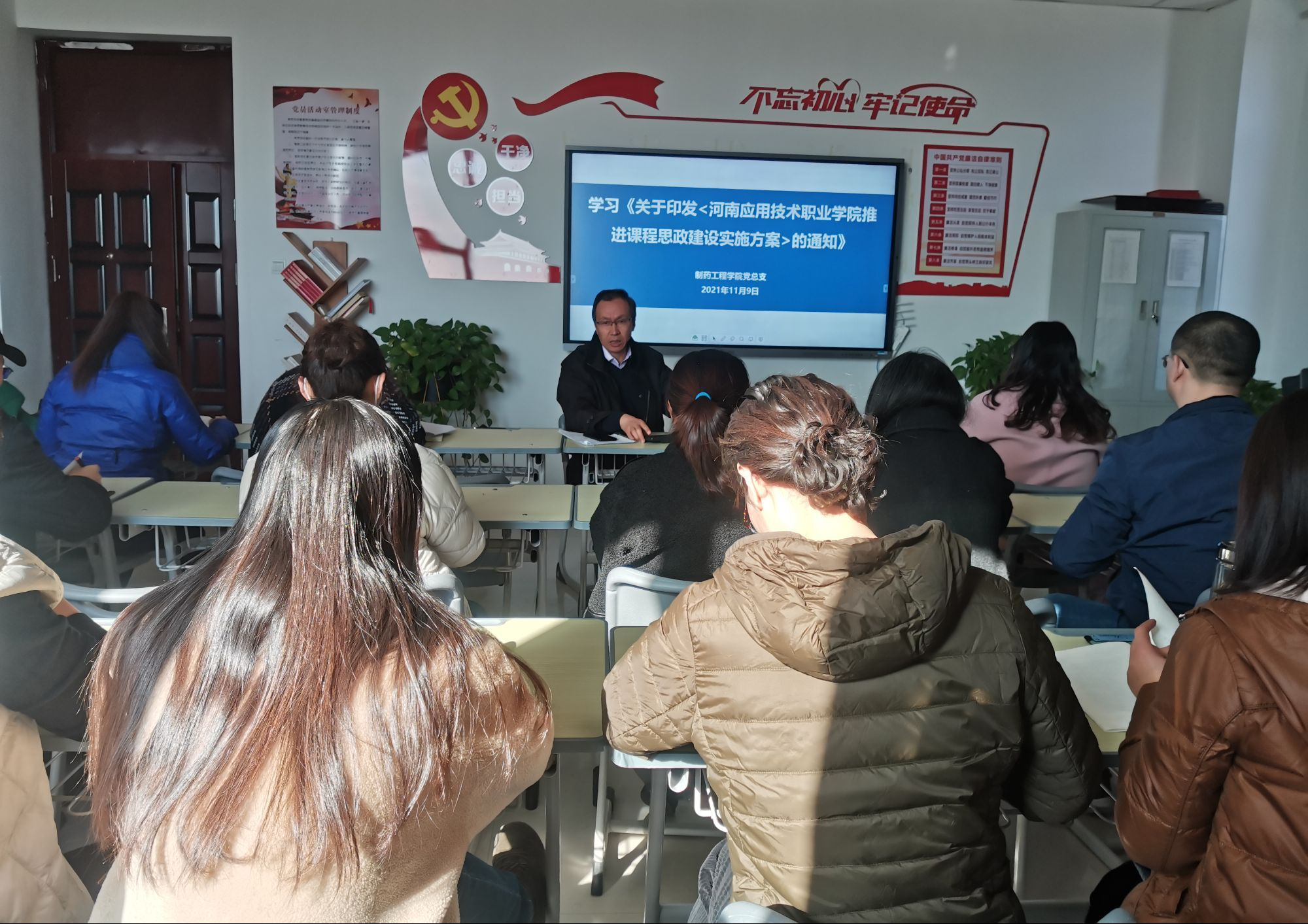 为充分发挥课堂主渠道在学校思想政治工作中的重要作用,切实把思想政治教育贯穿人才培养体系全过程,全面推进beat365官网课程思政建设,提高课程思政育人作用,根据学校工作安排,beat365唯一官网党总支于2021年11月9日下午2点在501党员活动室,组织学习《beat365唯一官网推进课程思政建设实施方案》。beat365唯一官网党总支副书记韩恩远主持会议,党总支全体教职工参会。
