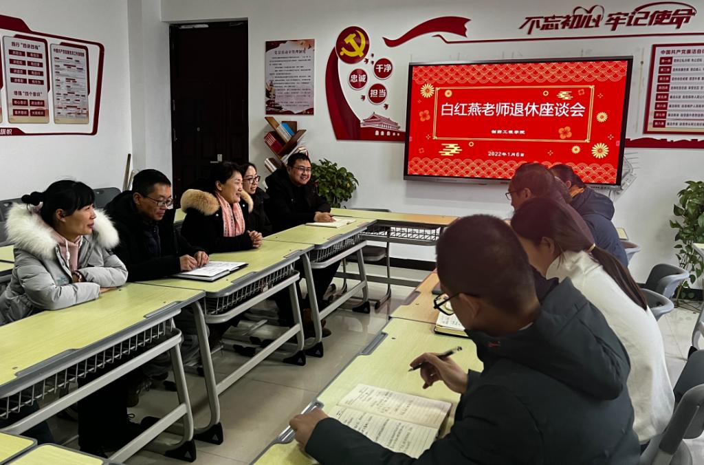 窦传斌、韩恩远、高莉丽也进行了讲话,对白红燕同志几年来对学院实训室管理工作付出的辛勤劳动与取得的成绩给予肯定,对她认真的工作态度给予了高度赞扬。同时也希望她继续关心、支持学院发展,多为学院的发展献计献策。向她光荣退休表示了慰问与祝贺。