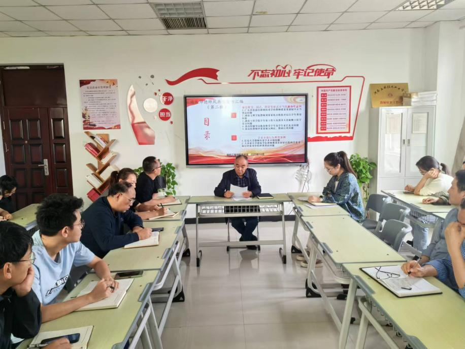 窦传斌带领大家学习《违反师德师风典型案例汇编(第二辑)》,窦传斌指出,教师这一职业代表了无私奉献的精神,是高尚社会精神的显著体现。大家作为一名教师要始终不忘初心、牢记使命,强化信仰,坚决维护教师的尊严,在日常生活中也要自觉规范自己的行为,做到知敬畏、存戒惧、守底线。