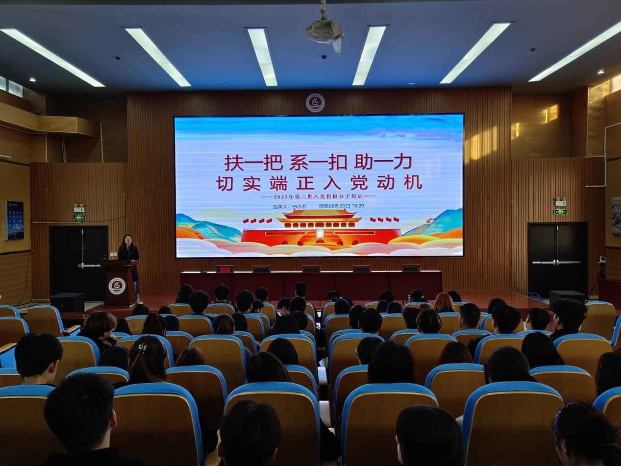 为切实加强入党积极分子的培养教育和考察,提高入党积极分子的政治素质和理论修养,确保党员发展质量。beat365唯一官网党总支于2023年10月20日下午在行政楼五楼报告厅举行了beat365唯一官网党总支第十期入党积极分子培训班开班仪式。beat365唯一官网党总支书记窦传斌、副书记白小茗、学工支部组织委员曹璐及2023年第二批80名入党积极分子参加了本次开班仪式,会议由学生会负责人窦继坤主持。
