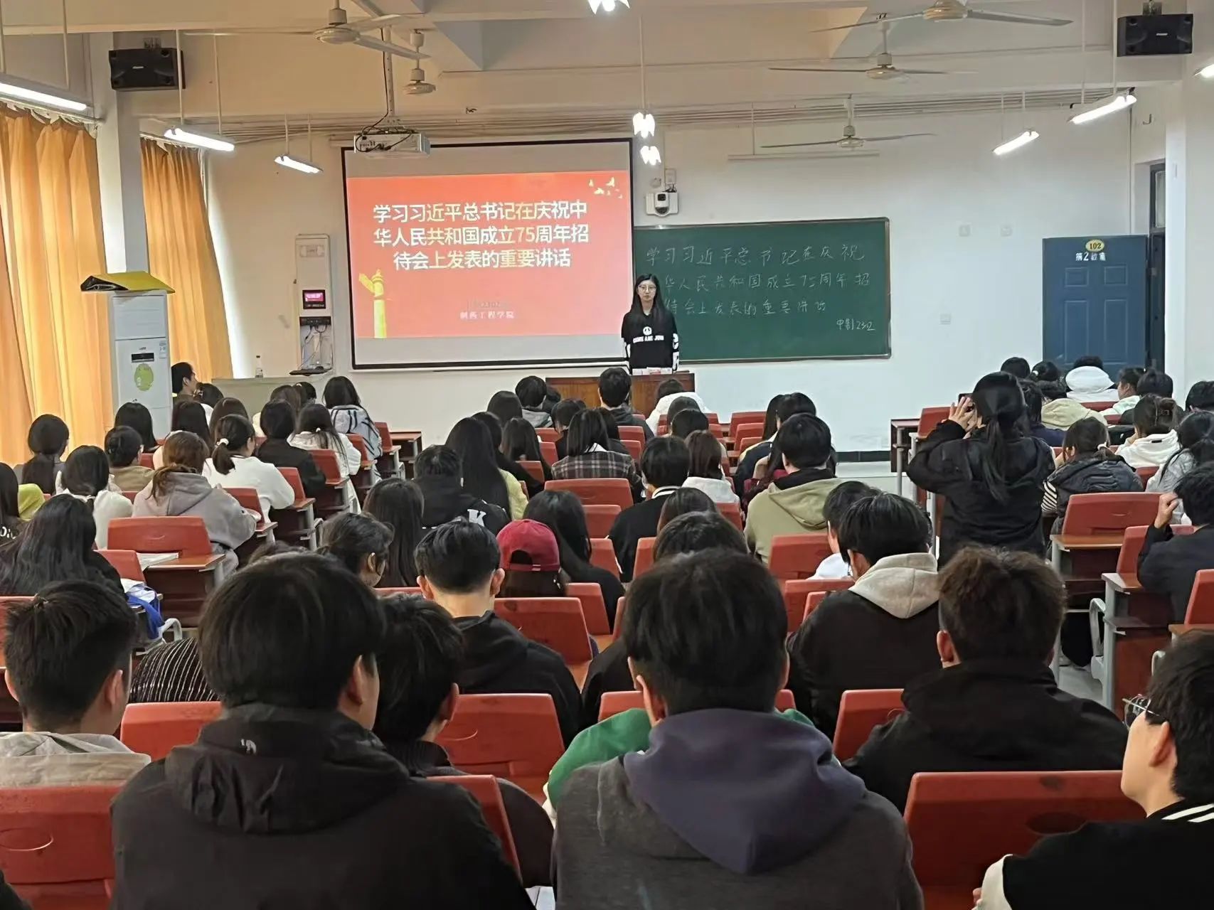 为深入学习贯彻习近平新时代中国特色社会主义思想,引导广大学生深入理解与把握习近平总书记关于中国式现代化的重要论述,凝聚青年奋进的力量,牢记历史使命和责任担当,beat365唯一官网于11月13日下午召开了“学习习近平总书记在庆祝中华人民共和国成立75周年招待会上发表的重要讲话”主题团课。