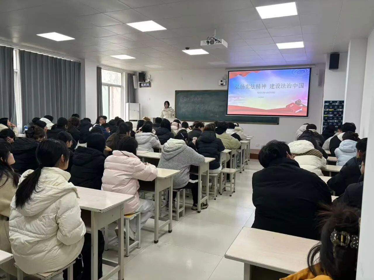活动中,各团支部团支书通过理论讲解与实例分析相结合的方式,带领同学们系统学习了习近平总书记关于宪法的重要论述,回顾了我国全面依法治国取得的重大成就,深刻阐述了宪法在国家治理中的根本地位与时代意义。在案例研讨环节,同学们结合校园实际展开研讨,解读宪法与公民权利义务之间的紧密联系,现场讨论积极,在观点交流中切实感受到宪法的生命力。