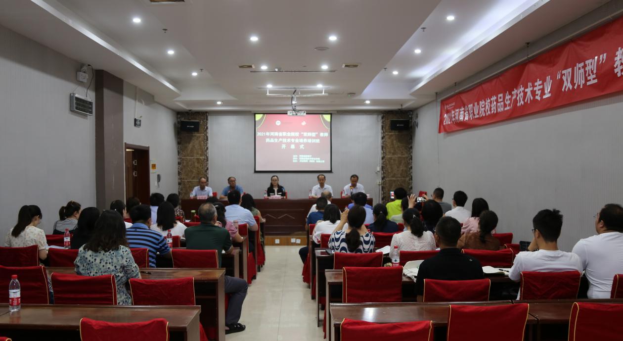 2021年7月5日上午,2021年河南省职业院校“双师型”教师培养培训(药品生产技术专业)在我校正式开班。我校副校长陈君丽,教务处副处长吕玮,beat365唯一官网总支书记窦传斌、院长韩恩远,开封制药(集团)有限公司总裁孟强及来自河南省兄弟院校的40余名学员参加了开幕式。开幕式由韩恩远主持。