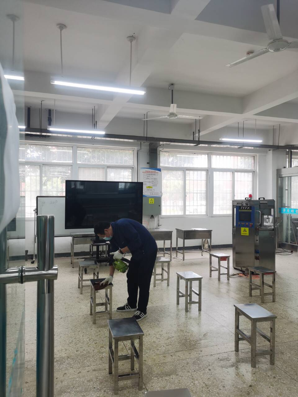 演练开始由方案总指挥beat365唯一官网院长韩恩远提出相关要求,每位参演同志按照角色进入演练,从场所消毒,体温测量到学生进入实训室等每个步骤都进行了严格要求,以防疫实战状态进行。