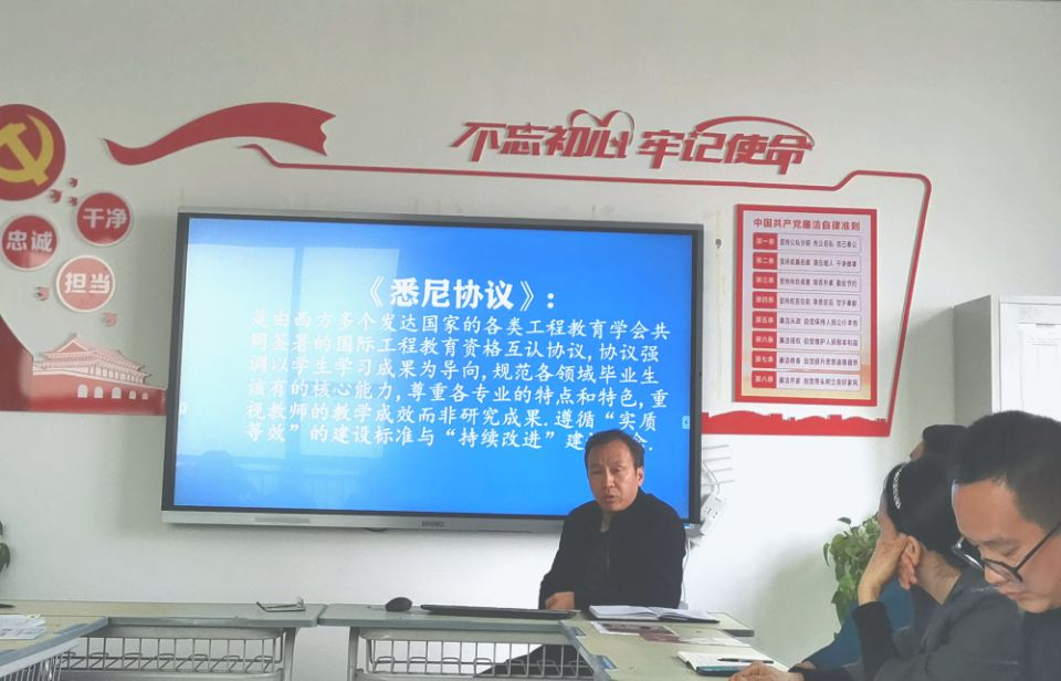为学习国际化专业建设的理念范式,深化专业内涵建设,规范专业人才培养的课程标准,beat365唯一官网于2022年3月15日下午15:00-17:00,在办公楼会议室501召开悉尼协议与专业建设专题教研活动。会议由院长韩恩远主持,参会人员有beat365唯一官网专职教师、实训管理员和辅导员。