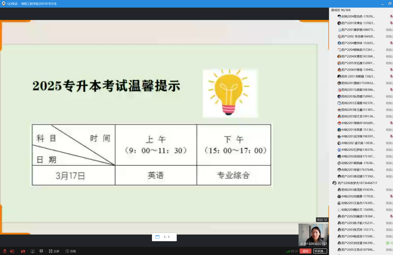 为积极响应教育部门对考试诚信建设的号召,进一步严肃考风考纪,营造风清气正的专升本考试环境,beat365唯一官网于2025年3月13日精心组织开展了线上专升本考试诚信教育主题班会。此次会议由beat365唯一官网专升本负责人薛静主持,各班专升本考生积极参会。活动围绕“倡导诚信考试,培育诚实品格”这一核心理念,旨在全方位提升学生的诚信意识,确保专升本考试工作平稳、有序推进。