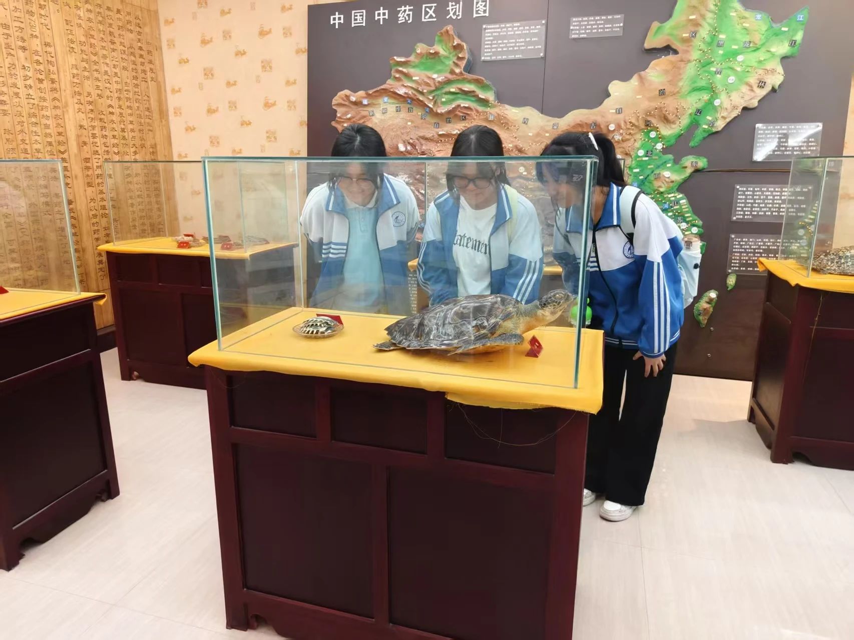 随后,在志愿者带领下铁路中学师生参观了中医药博物馆和医药学院健康管理实训室。博物馆内丰富的中药标本,结合多媒体辅助展示,全面地展示了中医药的发展历程。在数字化体验区,师生通过全息设备沉浸式观看古老医案、药材生长等动态影像,感受中医药文化魅力。伴随博物馆讲解员深入浅出的讲解,使大家得以沉浸式地体验和领略中医药文化的博大精深。