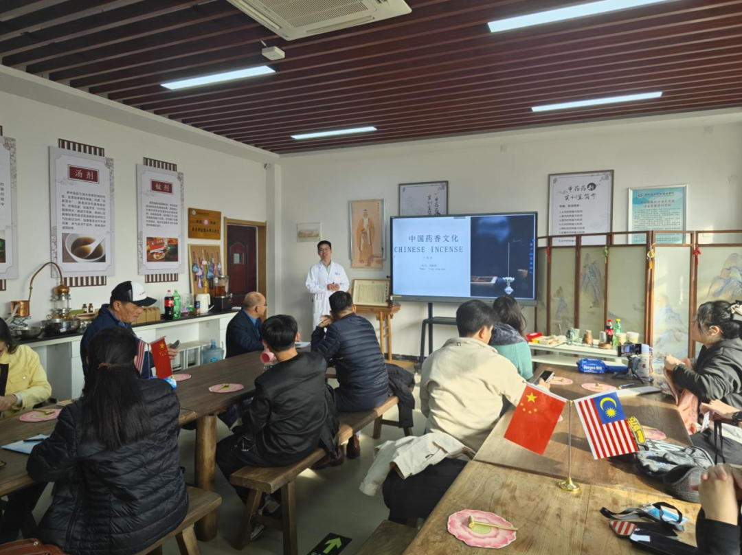 座谈结束后,与会人员现场观摩了郑州铁路职业技术学院药学院冯松浩老师指导马来西亚留学生制作驱蚊香囊、安神药香的实践课,就药香文化与现代健康产业的融合应用及推广价值交换意见。