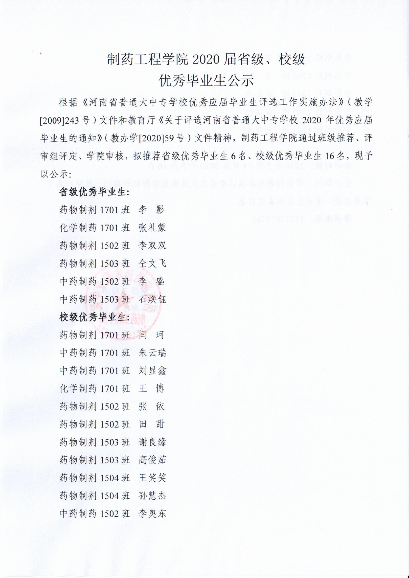 beat365唯一官网关于评选2020届省级、校级优秀毕业生公示