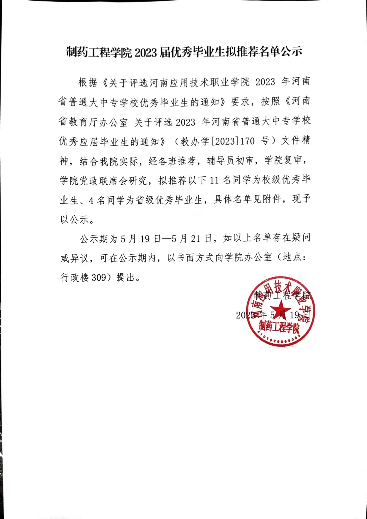 beat365唯一官网2023届优秀毕业生拟推荐名单公示