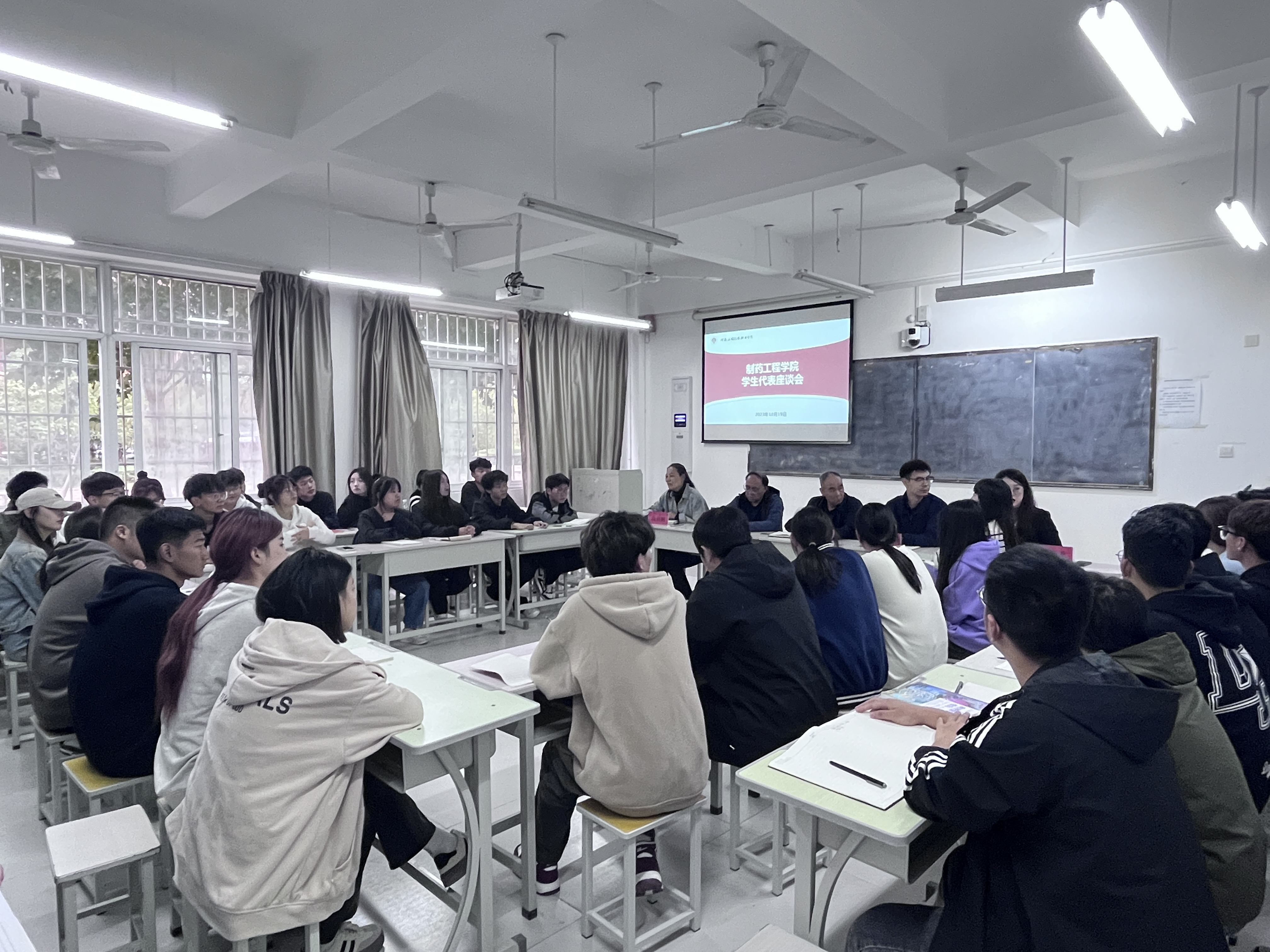 为全面贯彻落实党的二十大精神,不断增强服务群众本领、防范化解风险本领,践行学院管理暖人心、顺民意的工作宗旨,进一步做好学生的教育管理和服务保障工作,促进学生全面发展,beat365唯一官网于2023年10月19日下午在教学楼101教室组织召开学生座谈会。会议由学院副书记白小茗主持,学院党政领导班子及各班学生代表参加座谈,并特邀后勤处副处长臧乐天到会。