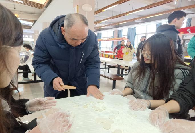 大家其乐融融,分工协作,尽显本人“十八般武艺”。会擀皮的一手持面团,一手擀面杖;会包的一手托饺皮,一筷取饺馅,一个个或规整有型、或造型各异的饺子快速诞生。在老师、食堂大师傅、餐厅好阿姨的指导中,同学们的通力合作,经过一个多小时的努力,包出了一屉屉独具特色的饺子。大家吃着自己的劳动作品,感受中华传统文化的魅力和校园的温暖。一个小小的饺子,“包”住了浓浓的情谊。大家包的是饺子,学的是本领;品尝的是成果,收获的是成长。