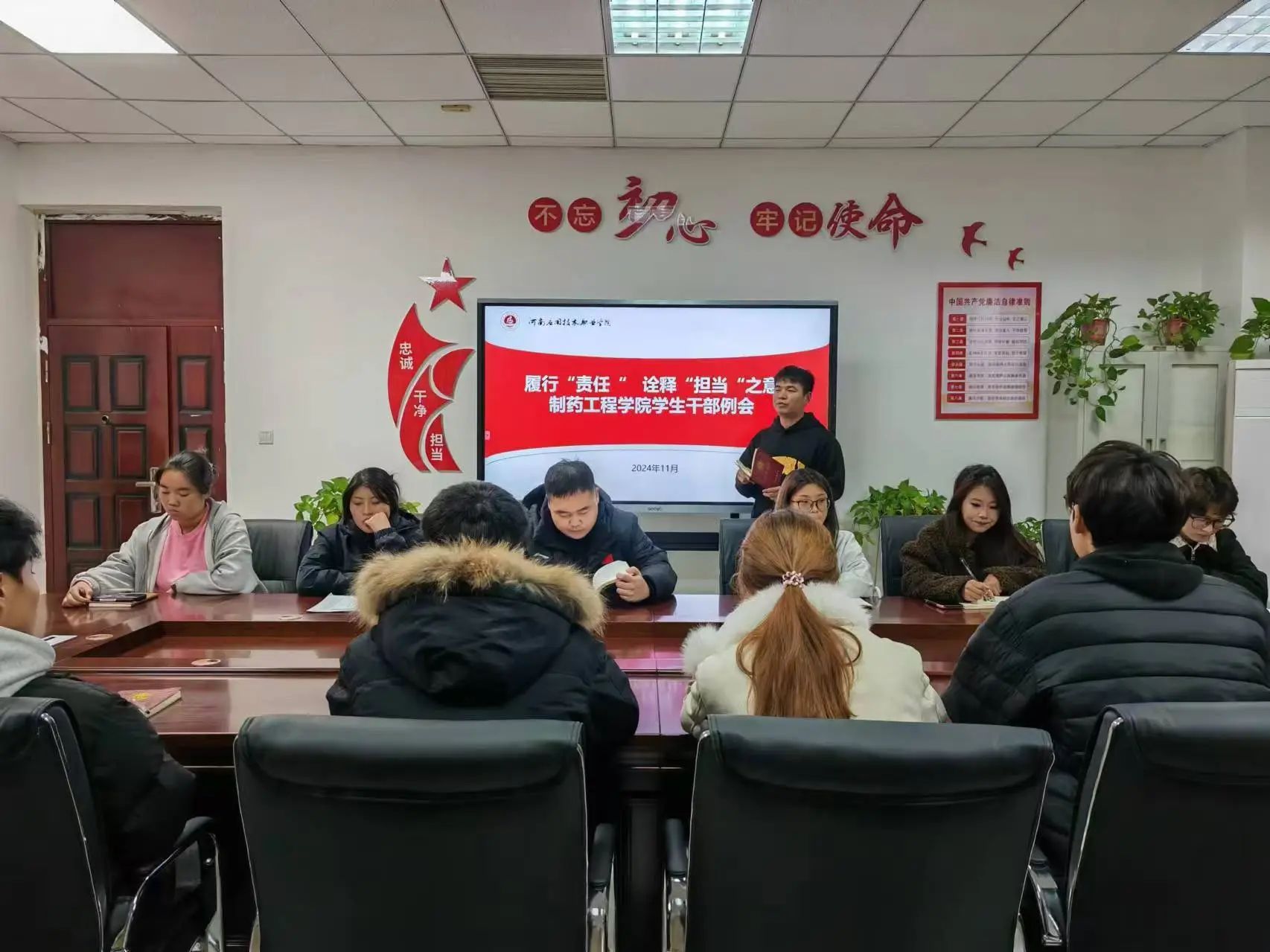 为了加强beat365官网学生干部队伍建设,提高学生骨干的综合素质,提升服务意识,增强学生干部的凝聚力与战斗力。beat365唯一官网学生会于2024年11月18日在行政楼301召开学生干部例会,学生会全体干部参加本次会议,会议由主席团成员祝海辰主持。