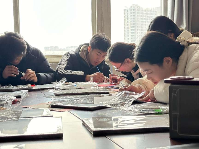 活动现场,学生们热情高涨,在老师的指导下,认真学习金箔画的制作技巧。从画面的构图,到金箔的粘贴,同学们专注与耐心地完成了各自作品,不仅展现了学生们的创造力,更传递出他们对传统文化的热爱与向往。