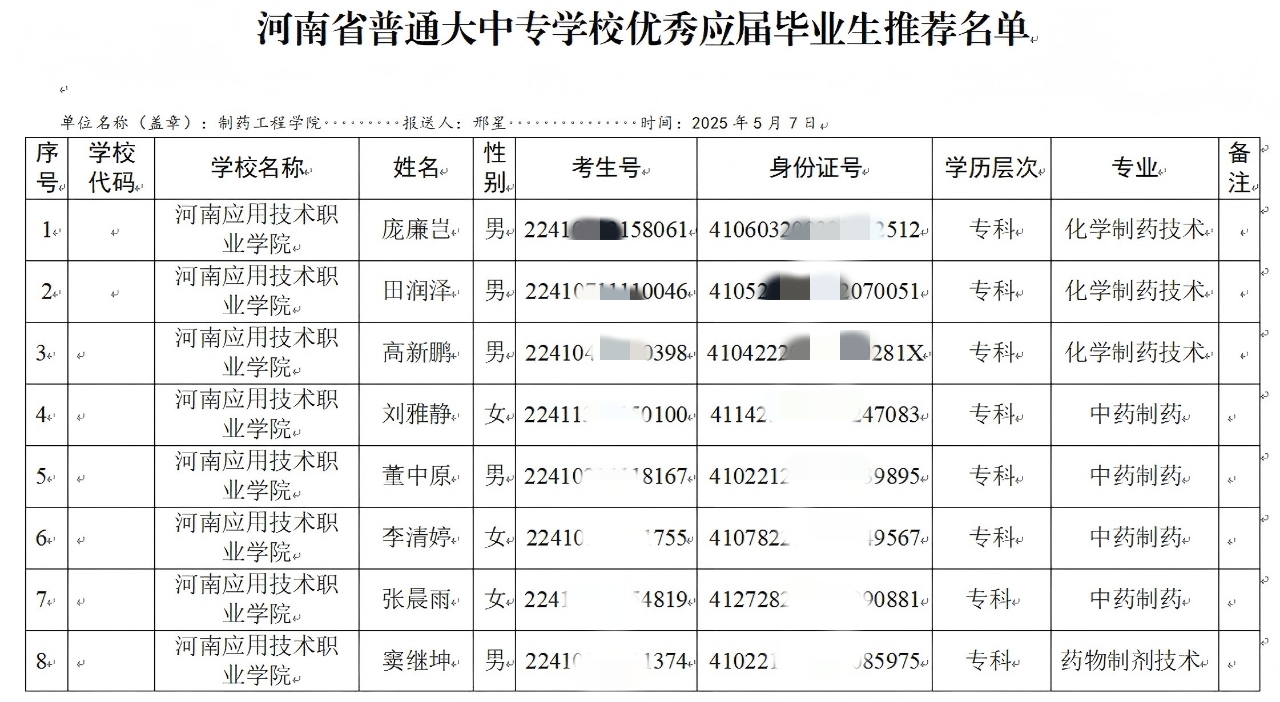 2、《河南省普通大中专学校优秀应届毕业生推荐名单》