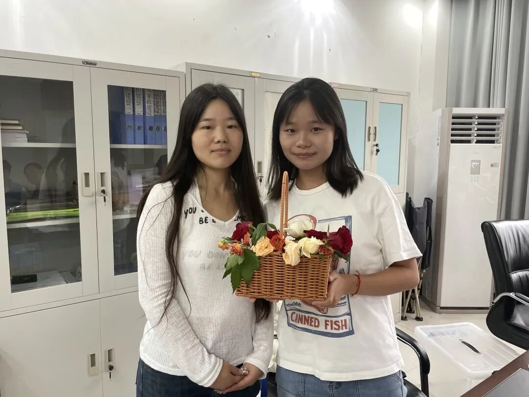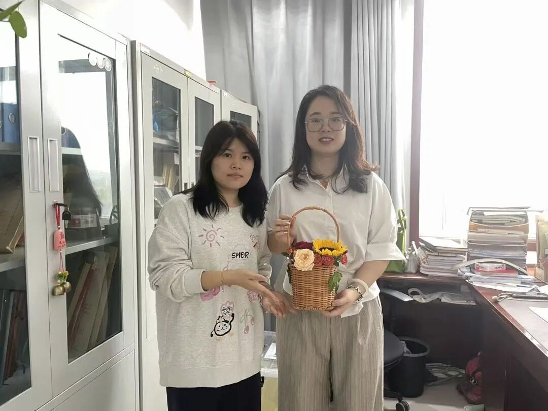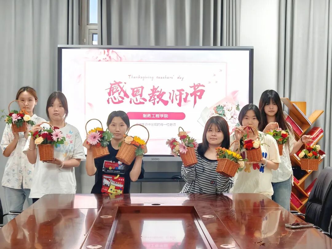 教师节前一天,学生代表分组前往学院办公室、教室,提前为老师们送上亲手制作的篮花礼与节日祝福。