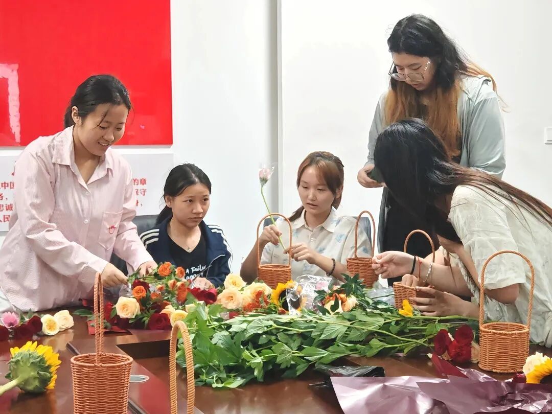 9月8日下午,学生代表在办公楼301活动室开展了手工扎花活动。同学们精心挑选花材,用心设计、巧妙搭配,将一朵朵鲜花编织成饱含深情的篮花礼。活动现场气氛温馨,同学们在动手实践中不仅提升了审美与协作能力,更将劳动教育与感恩教育融为一体。