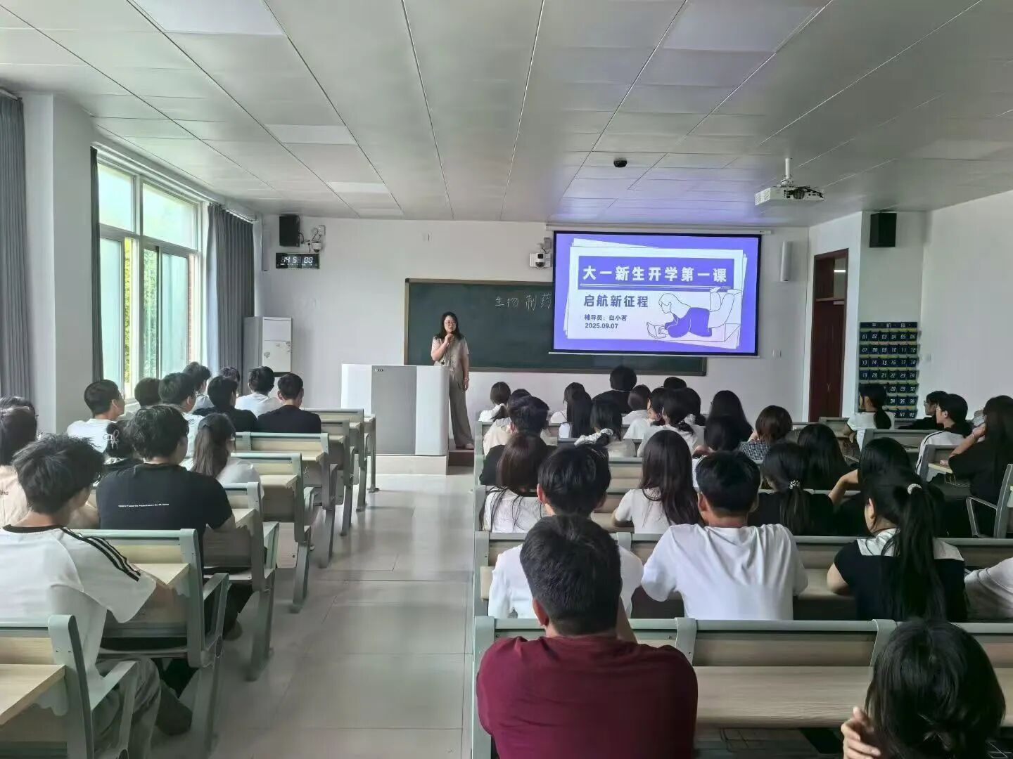 在开学第一课主题班会上,辅导员们围绕“认知、规划、成长”三大核心展开。首先,辅导员结合制药工程专业特色,从学院历史沿革、师资力量、课程体系及就业前景等方面进行详细讲解,帮助新生建立对专业的初步认知,激发学习兴趣;同时聚焦校园安全,重点强调消防安全、实验室安全等内容,提醒新生提高安全防范意识。此外,辅导员还针对大学学习方法、时间管理、学生组织与社团选择等新生关心的问题进行指导,鼓励大家制定合理的大学规划,积极参与学科竞赛与实践活动,在专业领域深耕细作,成长为符合制药行业需求的高素质人才。