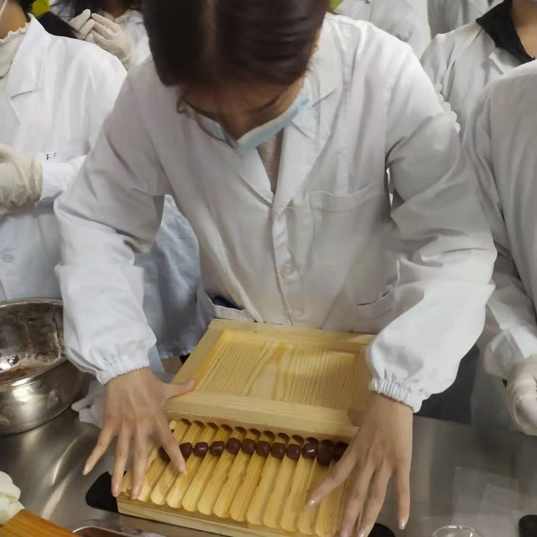 中药丸剂作为中药传统剂型,临床应用历史悠久,大山楂丸则是中药大蜜丸中的典型制剂,其主要成分包括山楂、神曲、麦芽、蜂蜜,具有开胃消食的功效。此次体验活动,学生们在教师的指导下体验大山楂丸的生产过程,认知中药传统制剂的制备工艺。