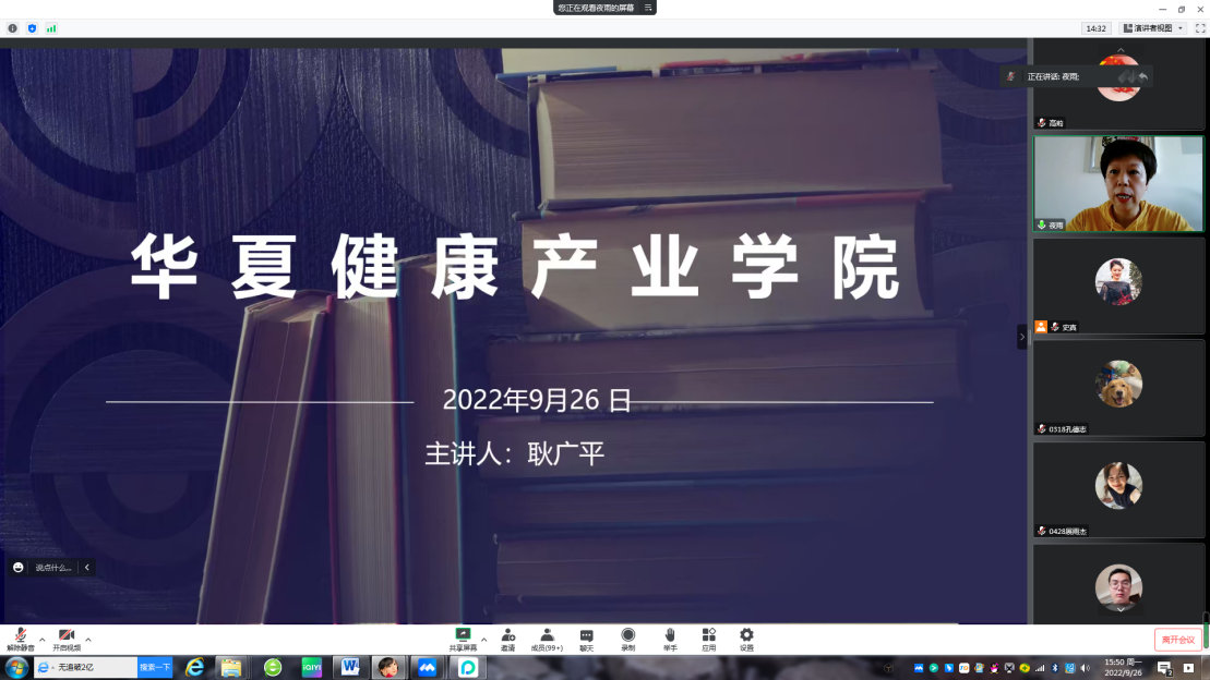 9月26日下午,由河南省医药行业协会职业教育分会秘书长耿广平、河南华夏健康管理有限公司副总裁朱庆凯及人力资源中心副总监孔慧萍,分别就产教融合职业教育政策解读、华夏健康产业学院人才培养方式等方面为学生开展了一场精彩的讲座。