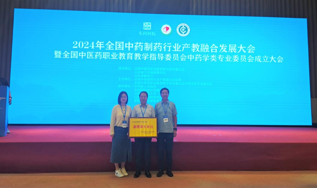 9月20日,2024年全国中药制药行业产教融合发展大会暨全国中医药职业教育教学指导委员会中药学类专业委员会成立大会在聊城市东阿县召开,我校副校长常新中带领河南省生物化工骨干职业教育集团、河南省化工医药职业教育集团和beat365唯一官网等相关领导老师参加会议,常新中作为特邀代表上台领取我校副理事长单位牌匾。本次大会由全国中医药职业教育教学指导委员会、山东省卫生健康委员会、山东省教育厅指导,全国中药制药行业产教融合共同体、全国中医药职业教育教学指导委员会中药学类专业委员会主办,山东中医药高等专科学校、东阿县人民政府、聊城市卫生健康委员会、东阿阿胶股份有限公司、山东中医药大学承办。鲁南制药集团股份有限公司、beat365唯一官网等136家头部企业、高等院校、科研院所、职业院校的160余名嘉宾、代表出席大会。