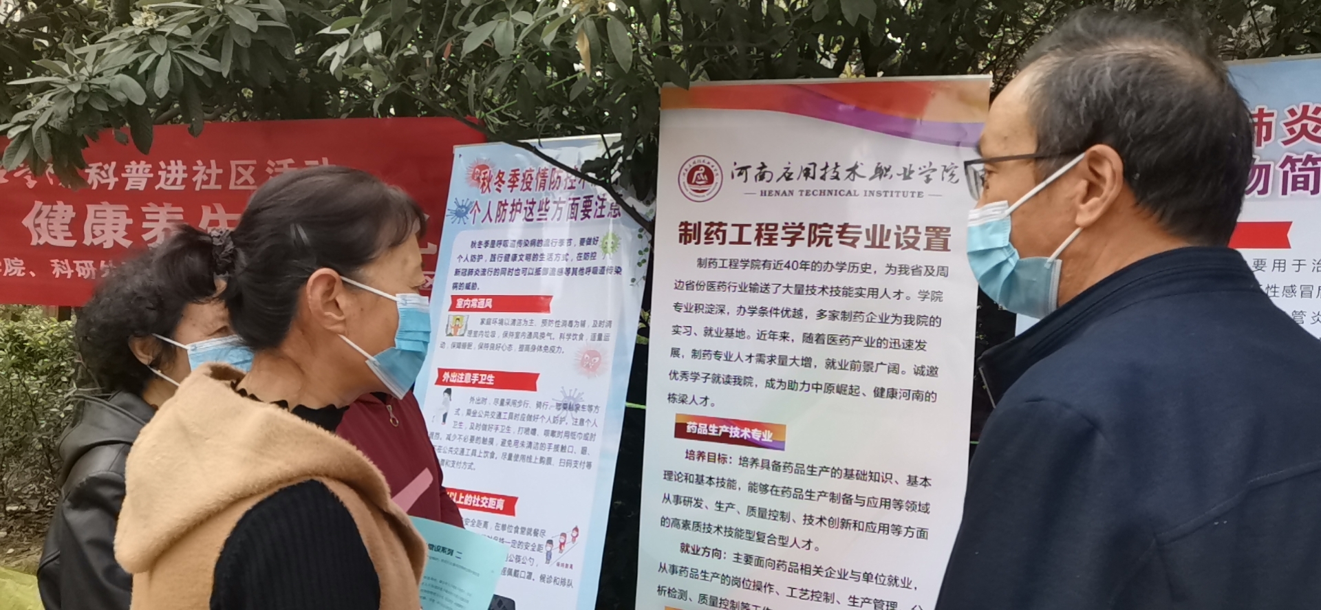 在活动现场,市民张女士表示: “虽然目前疫情进入常态化防控阶段,为避免流感与新冠肺炎疫情叠加,防控工作也丝毫不能松懈。你们的《秋冬季健康防护指南》宣传册,知识简单易懂,增强了我们的防护意识、提高个人防护能力”;专业教师王清照又为辖区居民做了“秋冬季安全用药小常识”科普知识小讲座。虽然天气略微寒冷,但挡不住居民们求知的步伐,活动现场气氛十分热烈。群众们纷纷表示,希望专业院校能多下基层开展这种接地气的科普活动,每个人都是自己“健康第一责任人”,我们愿与您一同守护来之不易的抗疫”成果!