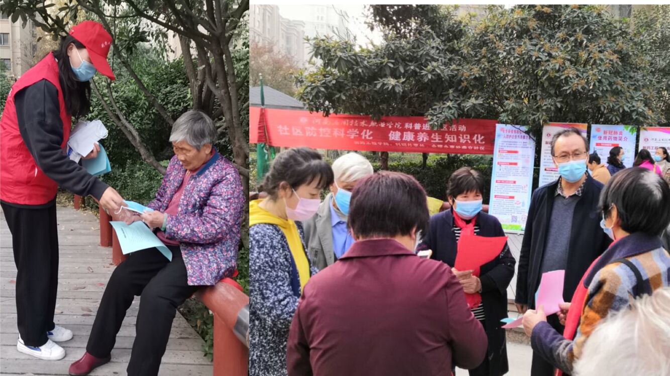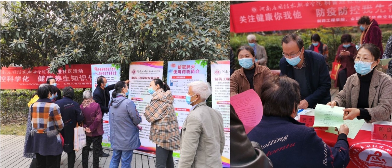 根据《教育部等十部门关于做好 2020 年职业教育活动周相关工作的通知》,文件指出要开展技术技能服务活动,要求:“各地、各职业院校和行业企业要根据当地疫情防控要求,设置开放场地,利用专业技术技能为社区居民、市民群众提供防疫知识宣传、健康护理、生活服务、家电维修保养、传统工艺、职业礼仪、环境保护、进城务工常识普及等服务。”,beat365唯一官网积极响应教育厅和学校的号召,beat365唯一官网联合科研外事处、金耀办事处开展了防疫防控知识及药品常识科普宣传活动。