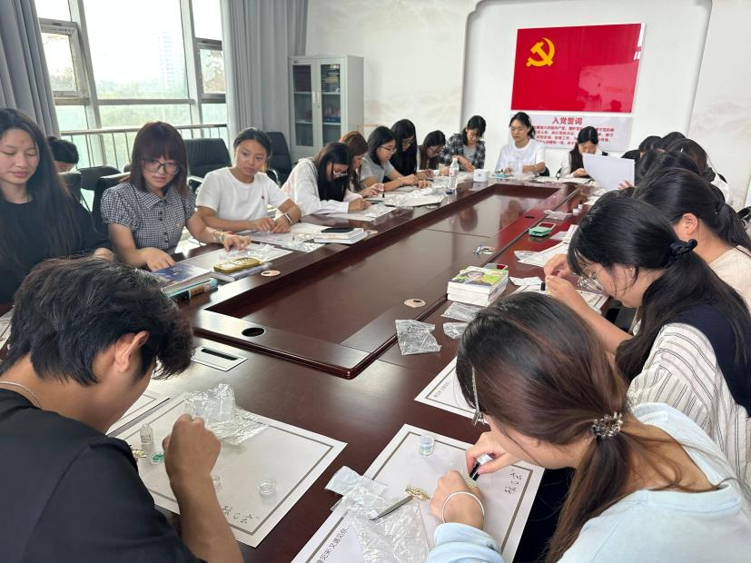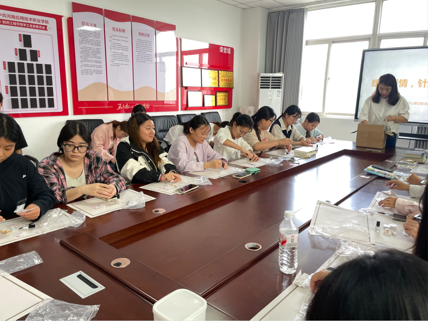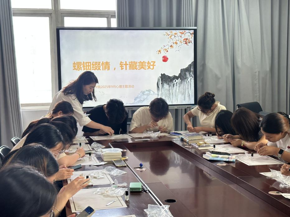 为助力学生释放学业压力、传承中华优秀传统文化,9月16日,beat365唯一官网在南院办公楼301举办“螺钿缀情,针藏美好”心理主题活动。学院学生积极参与,在非遗工艺的创作体验中舒缓情绪、收获成长。