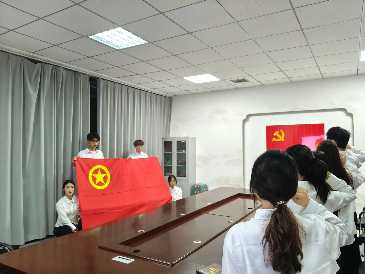 仪式在庄严的国歌声中正式拉开帷幕。曹璐宣读新发展团员名单,现场随即响起热烈掌声,向新团员们致以诚挚祝贺。随后,王俊永、曹璐为新团员颁发团员证并佩戴团徽徽章。在庄严的入团宣誓仪式中,全体新团员庄严宣誓。新团员代表李珊珊在发言中郑重承诺,未来将在学业上精进深耕、笃志求真,在实践中淬炼意志、熔铸品格。优秀团员代表李欢欢分享成长心得,鼓舞新团员以梦为马、不负韶华,在青春赛道上坚定信念、奋勇前行。